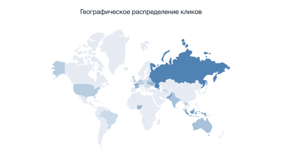 • Кликларнинг географик тарқалиши статистикаси ҳамкорлик фаолияти давомида энг кўп ўтишлари билан мамлакатларни кўрсатади.