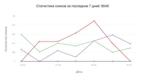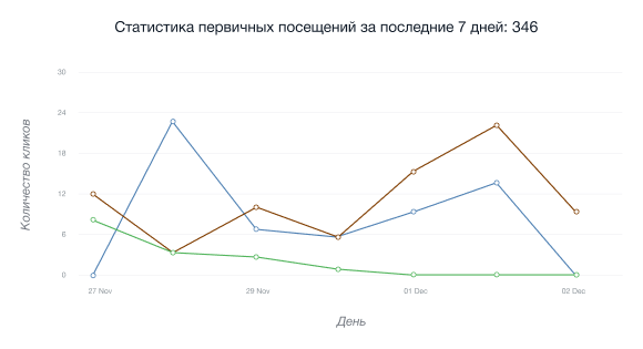 • Ҳамкорлик ссылкасига бўйича уникал кликлар графиги 24 соат ичида маълум IP-адресдан биринчи марта уни ўтган мехмонлар сонини кўрсатади.