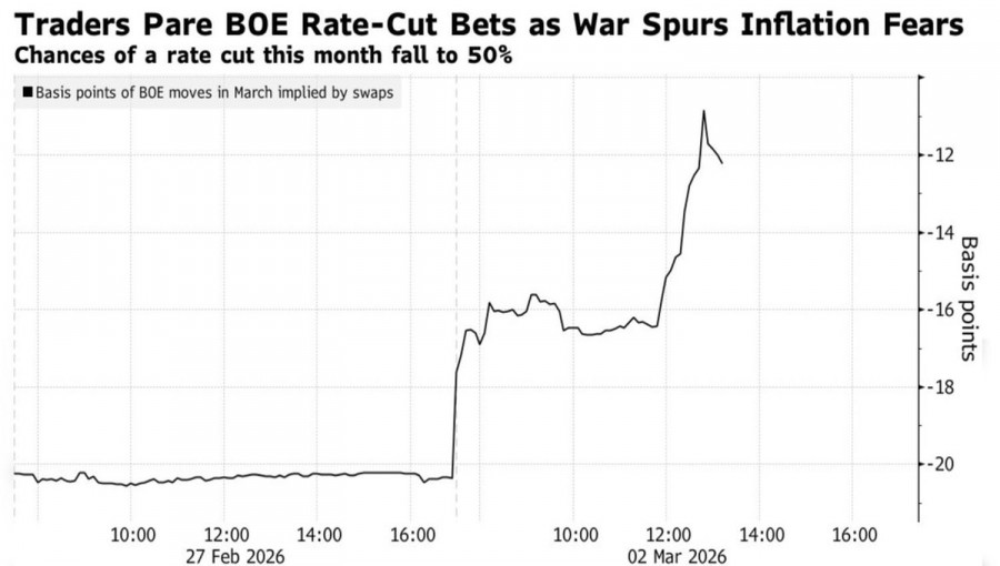 Фунт оказался одним из самых пострадавших от конфликта на Ближнем Востоке. Котировки GBP/USD рухнули к трехмесячным минимумам на фоне опасений по поводу повторения истории с энергетическим кризисом 4 года назад. Тогда введение Россией войск на территорию Украины с последующим кризисом правительства Лиз Трасс чуть не уронили стерлинг к паритету с долларом США. Похожие события имеют место весной 2026.Отличаются разве что масштабы. На рубеже февраля и марта 2022 цены на нефть взлетели на 50% из-за вооруженного конфликта в Восточной Европе. Нынче
